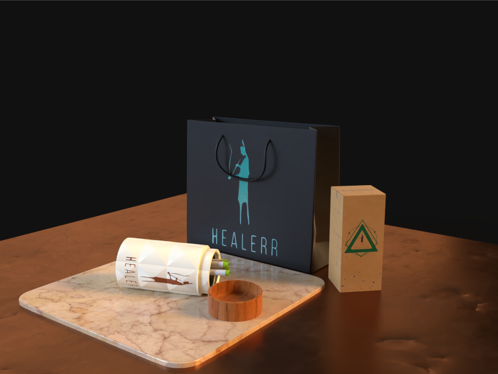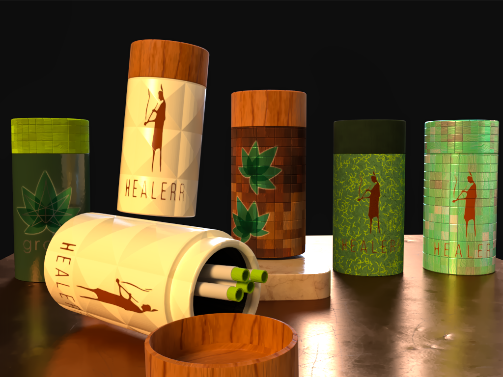 Presentation for a freelance Job proposal, requesting a hemp cigarette box and logo design. Mock-up brand "Healerr Grass Hemp Co."